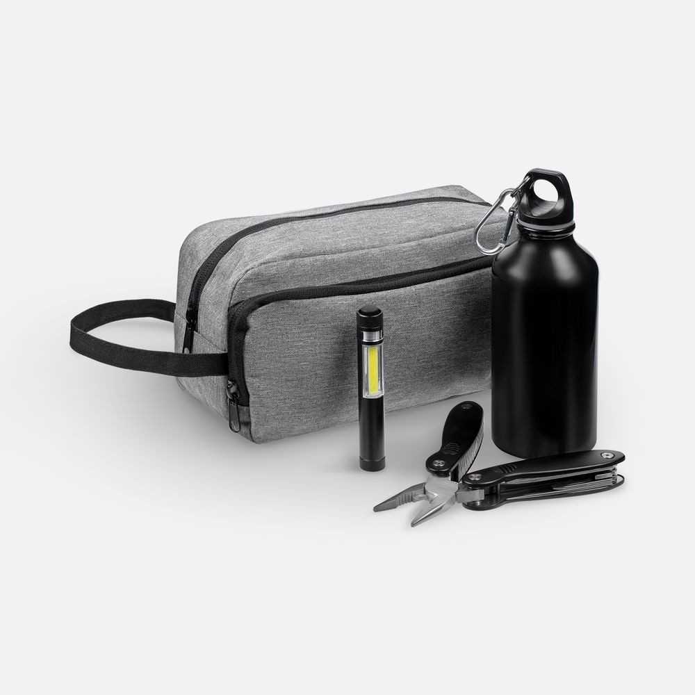 Материал: мультитул, фонарик, бутылка - алюминий; полиэстер