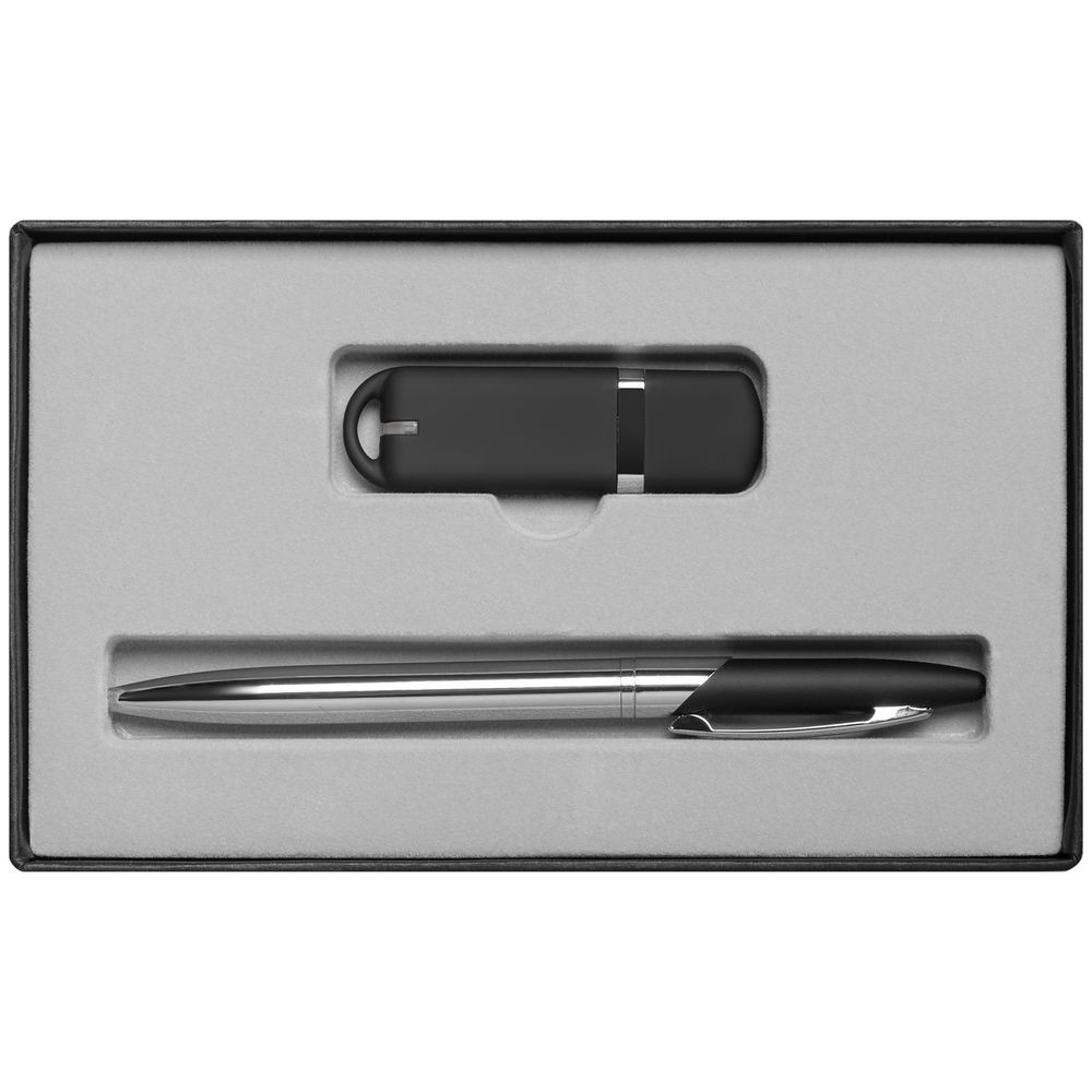 Материал: флешка - пластик, покрытие софт-тач; ручка - металл, покрытие софт-тач; переплетный картон