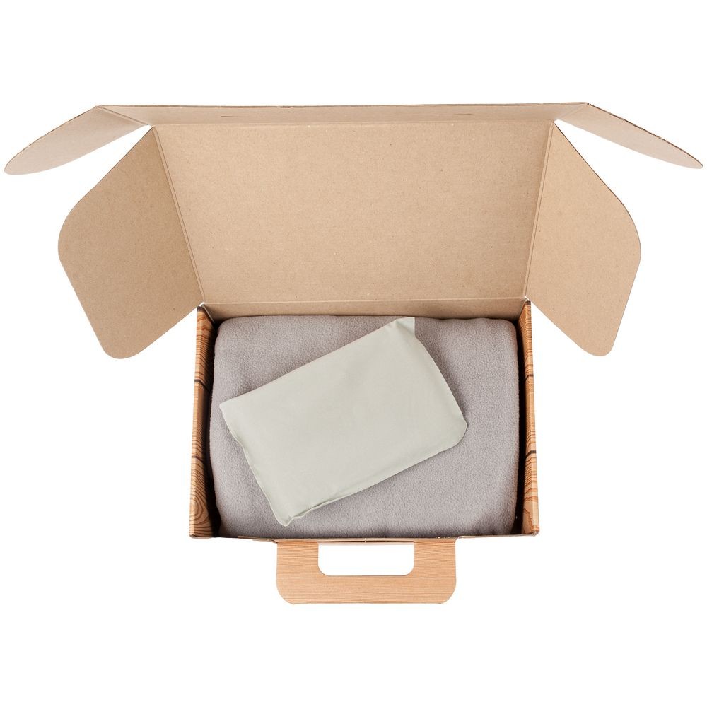 Размеры: подушка: 44х28 см; чехол: 18х11 см; плед: 100х140 см; коробка: 28х23,5х10,2 см