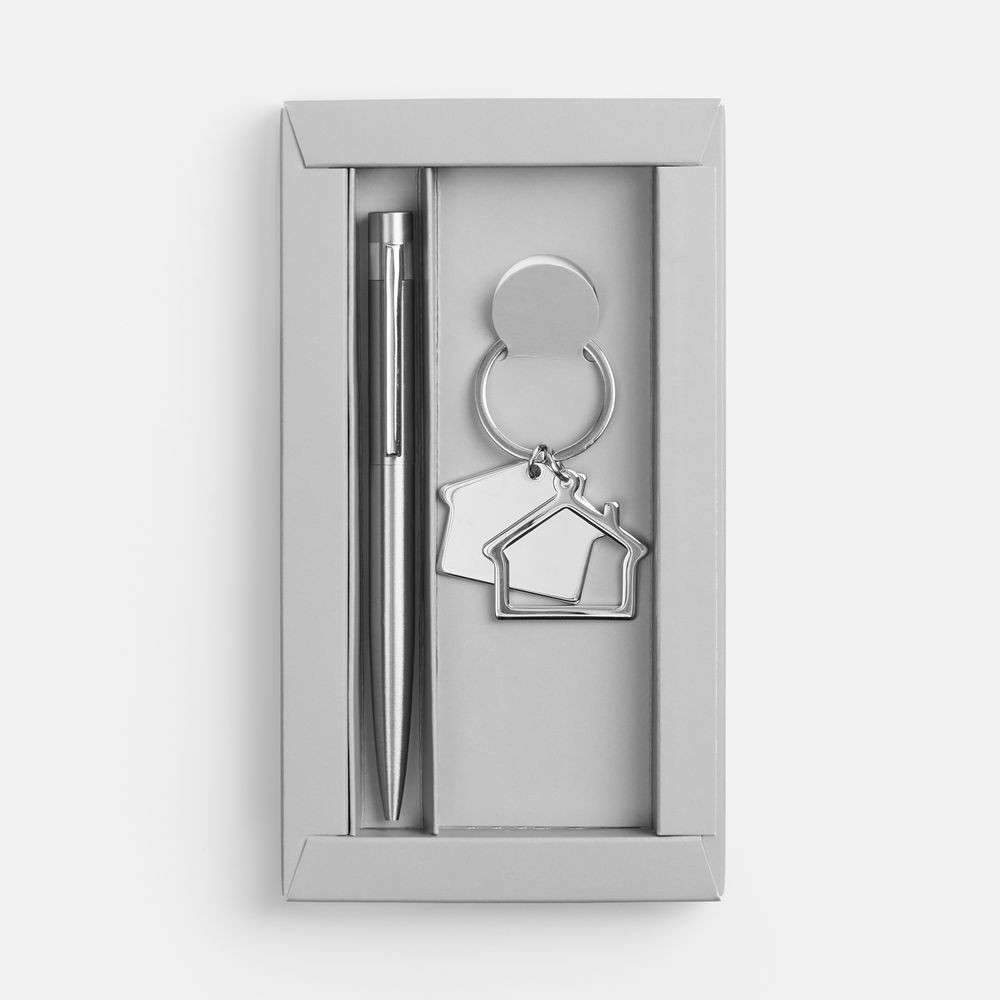 Набор Lodgero — стильный экокомпаньон для тех, кто строит будущее. Шариковая ручка в матовом корпусе из переработанной стали не только подчеркивает заботу об экологии, но и дарит уверенность в каждом слове. Металлический брелок с подвесками в форме домика — идеальный промосувенир для строительных компаний, агентств недвижимости и ремонтных сервисов. Lodgero — набор с устойчивым посылом и сильным характером.