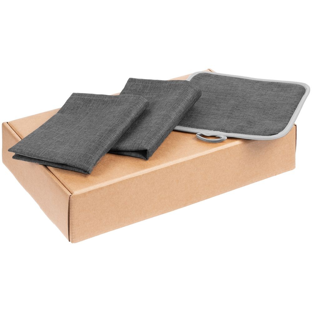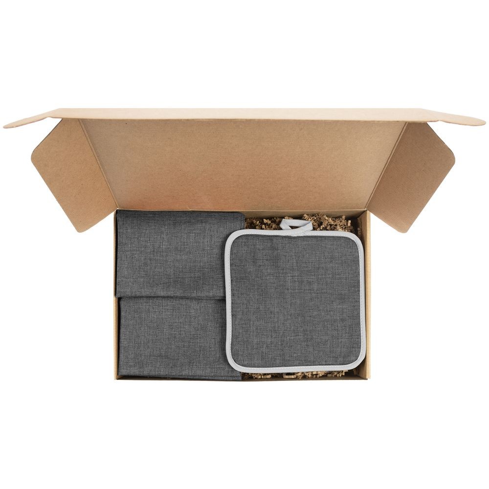 Материал: салфетка - полиэстер 100%; прихватка - полиэстер 100%; коробка - микрогофрокартон, плотность 385 г/м²