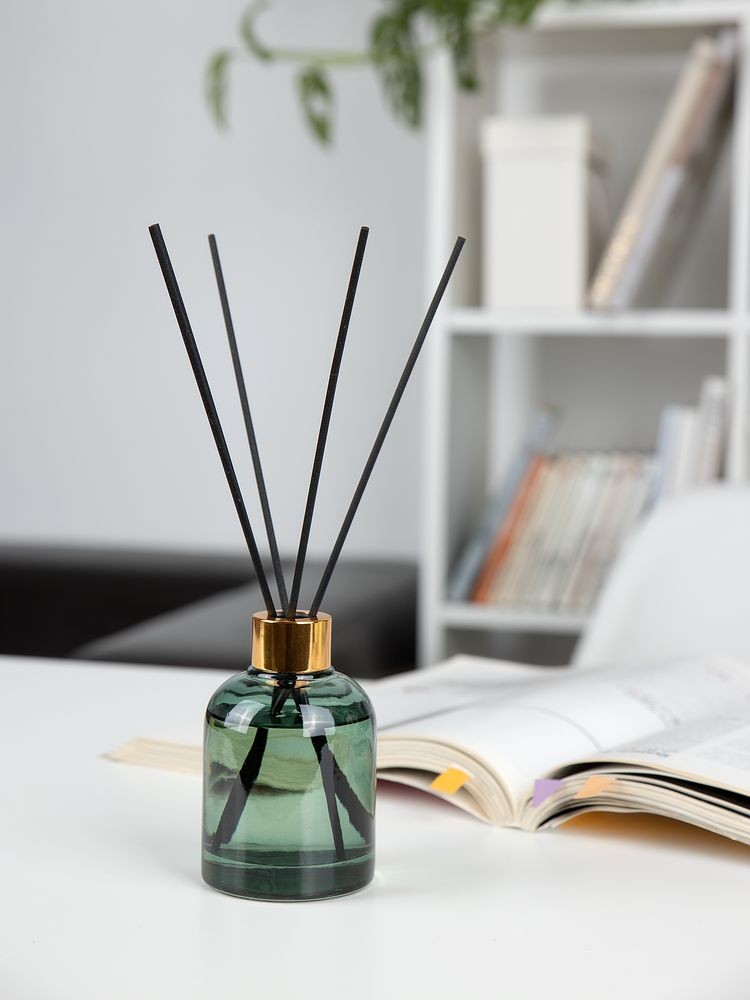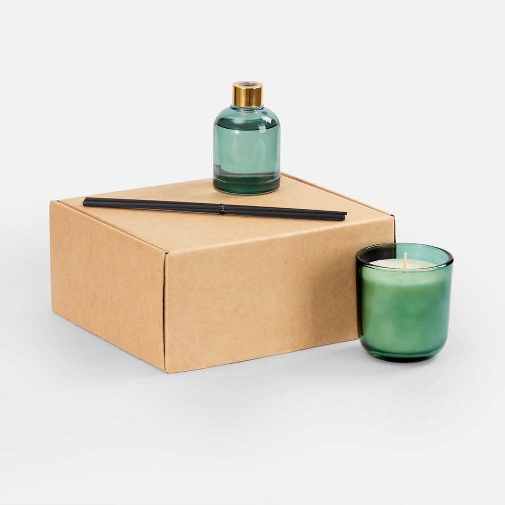 Материал: флакон, подсвечник - стекло, палочки из файбера; свеча - воск; коробка - микрогофрокартон, плотность 385 г/м²