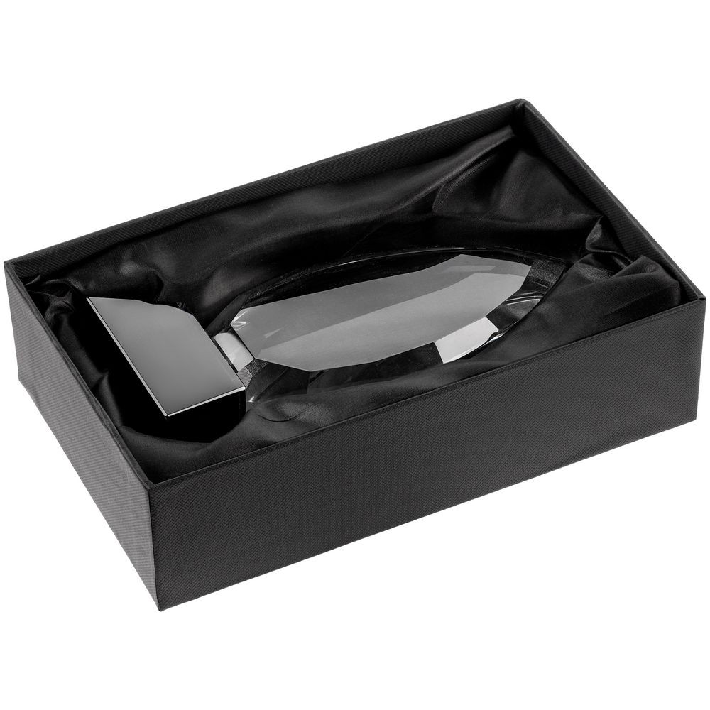 Стела изготовлена из стекла К9, в основе которого лежит оптическое боросиликатное стекло. Эту марку стекла отличает низкий процент посторонних включений, высокий показатель преломления и высокая прозрачность — идеальные качества для изготовления наград премиального уровня.