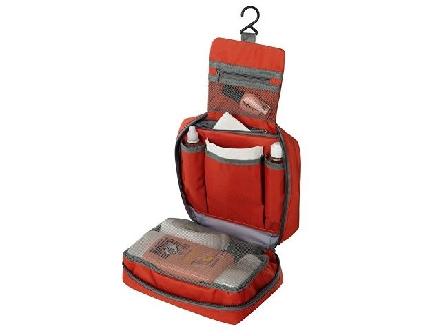 Несессер для путешествий – неотъемлемый атрибут комфортных поездок, служащий для компактного хранения различных мелочей. Аксессуар также пригодится для походов в спортзал и просто поддержания порядка дома. Это превосходный подарок любителю путешествий, а также отличный вариант промо-презента для рекламных кампаний. Большая поверхность позволяет нанести логотип или слоган фирмы. • Вместительное пространство с двумя большими отделениями и несколькими карманами дает возможность эргономично распределить весь дорожный арсенал косметических и туалетных принадлежностей. • Крючок позволяет подвесить аксессуар, например, в уборной поезда или гостиничном номере, в случае отсутствия полки. • Оптимальные размеры, не превышающие формат А4, позволяют легко разместить несессер в любом чемодане или дорожной сумке.