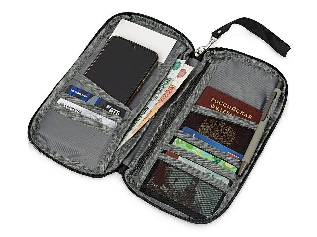 Органайзер для документов "Keep Safe" – незаменимый аксессуар для современного путешественника. Он позволяет держать под рукой все важные документы и легко извлекать их при необходимости. Изготовлен из плотного текстиля, который устойчив к износу и при необходимости легко чистится. • Несколько отделений разной формы позволяют разместить паспорт, проездные билеты, путевки, пластиковые карточки, удостоверения и другие важные документы • Плотные стенки надежно защищают содержимое от деформации и обеспечивают сохранность документов во время длительной транспортировки • Крепление для ручки фиксирует письменные принадлежности, и они не выпадут при открытии органайзера • Ремешок делает органайзер удобным для переноски в руке