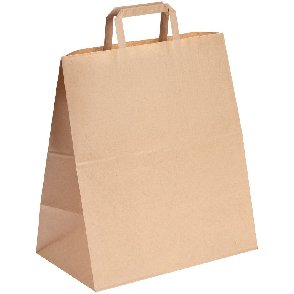Бумажный пакет с плоскими ручками. Выдерживает нагрузку до 2 кг.Допустимо отклонение линейных размеров до 5%.