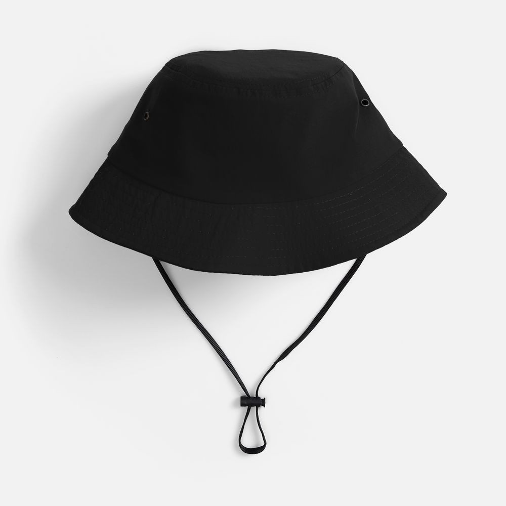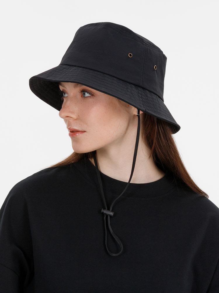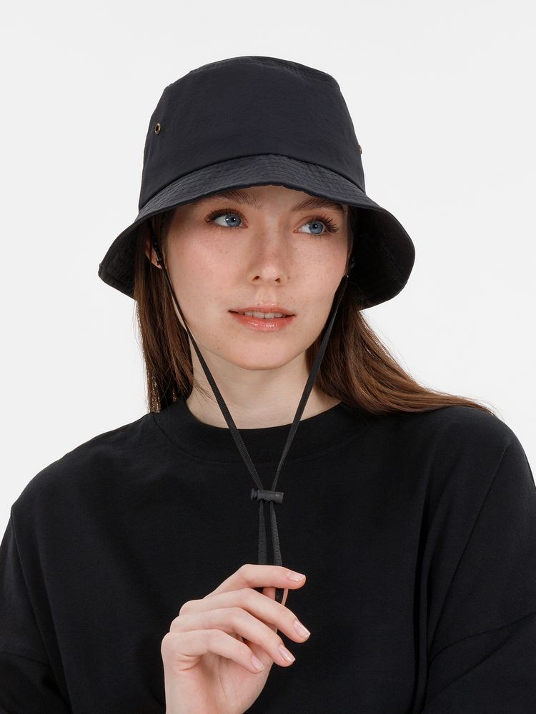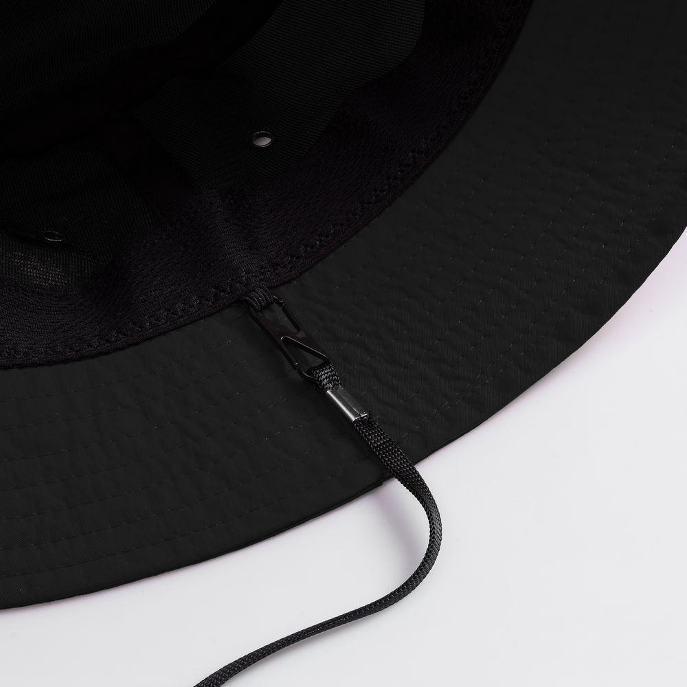 Укрепляющая тесьма на внутренних швах Плотные, широкие простроченные поля, которые держат форму Отверстия с металлическими люверсами обеспечивают хорошую вентиляцию Шнур с утяжкой для надежной фиксации панамы на голове Шнур съемный, крепится на пластиковые карабины Длина шнурка — 30 см