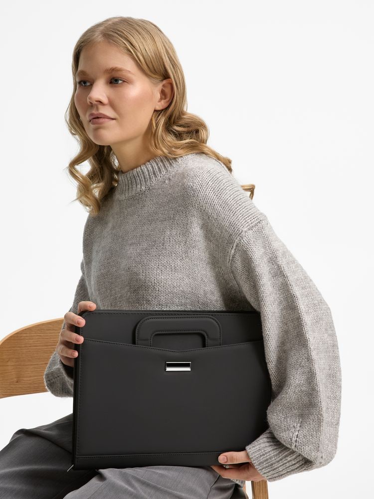 Во вместительной папке предусмотрено множество отделений для визиток, бумаг и письменных принадлежностей — для идеальной организации пространства. Особое преимущество — встроенный блокнот с листами в линейку, который можно легко открепить и положить на его место свои записи, например, для презентаций.