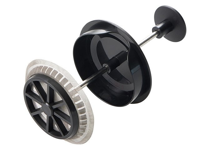 Этот кухонный прибор имеет плотно прилегающую пластиковую крышку, поршень из нержавеющей стали и пресс-фильтр с уплотнительным кольцом из пластика для отделения чайных листьев от воды.