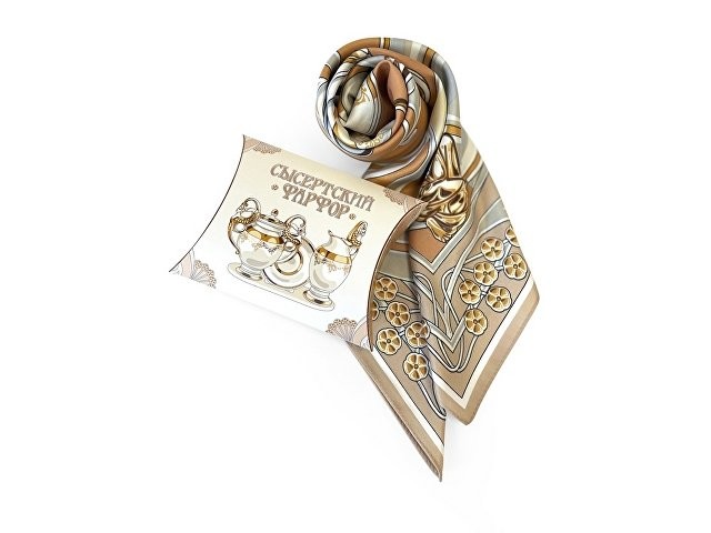 Композиция платка словно сказочный лабиринт увлекает за собой, вызывая желания рассматривать детали утонченного сервиза работы уральских мастеров. Изящные фарфоровые предметы расположены в ажурном серванте эпохи модерна.