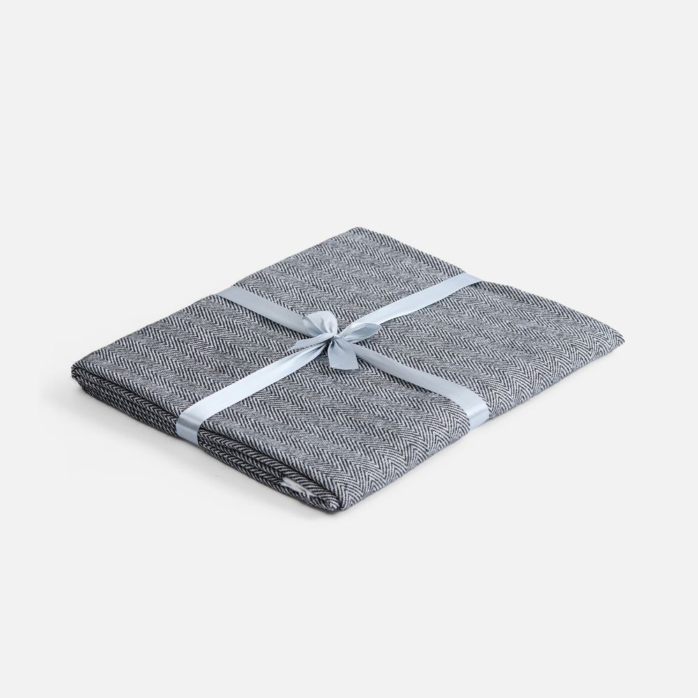Классический рисунок «елочка» не слишком привлекает внимание, но в то же время добавляет изюминки. Смешанный состав пряжи продлевает срок службы и существенно облегчает уход за пледом.