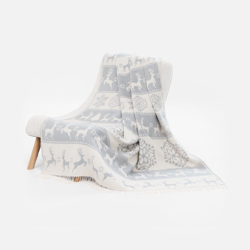 «Скандинавия» — воплощение уюта и тепла в каждой нити. Плед создан для тех, кто ценит качество и любит окружать себя красивыми вещами. Уникальный жаккардовый рисунок с изображением грациозных оленей и изящных снежинок перенесет в мир северной сказки. Каждая деталь узора тщательно проработана и сразу привлекает внимание, а плед моментально создает неповторимую атмосферу зимнего волшебства.Скандинавия. Тепло и очарование Севера.
