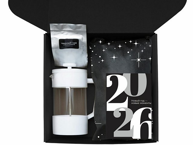 Подарочный набор c френчпрессом, кружками и чаем, белый