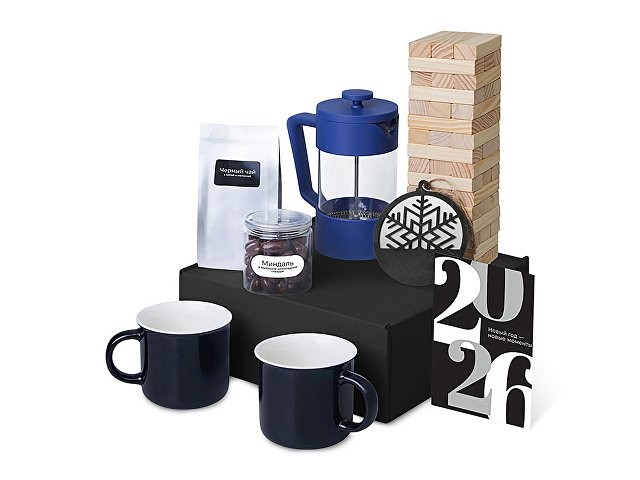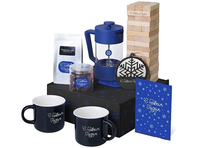 Подарочный набор c френчпрессом, кружками и чаем, синий