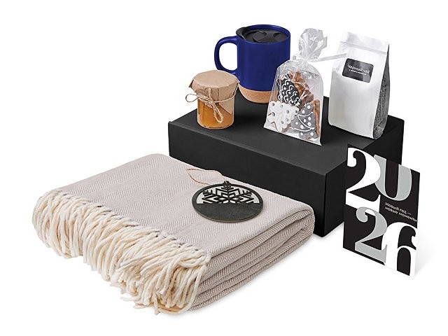 Подарочный набор c пледом, кружкой и вареньем, синий
