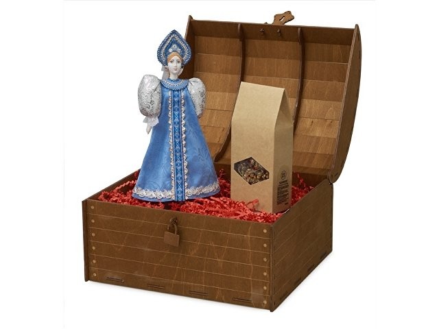 - Упаковка: деревянный сундучок с замочком, который можно персонализировать фирменным шильдом. Такой дизайн превращает подарок в драгоценный памятный сувенир.