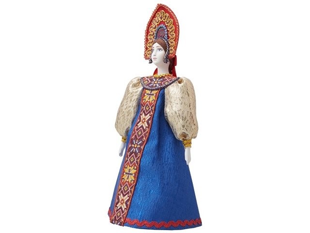 - Фарфоровая кукла в народном костюме ручной работы: расписной сарафан и кокошник с традиционной вышивкой воссоздают образ русской красавицы.