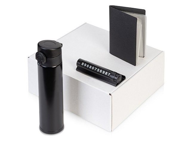 Полезный автомобильный набор для мужчин и женщин. Компактная термокружка-непроливайка на 300 мл удерживает тепло до 7 часов благодаря двойным стенкам из долговечной нержавеющей стали с вакуумной изоляцией. Герметичная крышка быстро открывается по нажатию кнопки и имеет дополнительную защиту от случайного открывания. Подходит для большинства автомобильных подстаканников и помещается в рюкзак или сумку. Парковочная табличка оснащена поворотным механизмом, позволяя быстро открыть или закрыть номер телефона. Съемные магнитные цифры поставляются в комплекте, надежно крепятся на панели и не боятся тряски. Качественная обложка из искусственной кожи сохранит документы в целости, защищая их от изломов, пыли и грязи. Внутренние вкладыши выполнены из пленки пвх и позволяют разместить: паспорт, свидетельство о регистрации тс, полис осаго, водительское удостоверение. - табличка имеет подставку под телефон; - клеевые крепления для таблички в комплекте; - крышка с удобной поилкой; - портмоне имеет дополнительный кармашек для пластиковой карты; - подарочная коробка с наполнителем уже включена в набор.