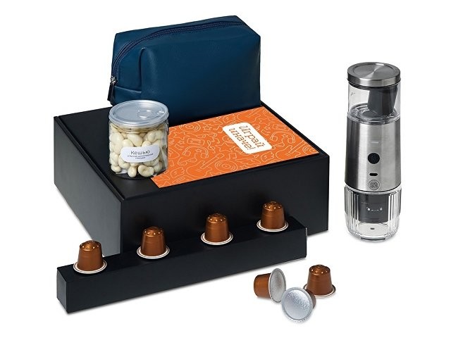 Наборы серии Re: напоминают: важнее всего человек, а не его роль. Они дарят возможность замедлиться и насладиться настоящим. Каждый набор — как мини-ритуал: согреться, почувствовать себя, поблагодарить и восстановиться после дней, полных скорости, дедлайнов и шума. Re:y. — Универсальные наборы для осознанного отдыха, которые помогут отстраниться от информационного шума, замедлиться и подарить себе время на настоящую жизнь и личные моменты счастья. Набор "Re:y. Boost" о бодрости, энергии и маленьких ритуалах, которые можно взять с собой. Портативная кофемашина и кофе в капсулах позволяют приготовить ароматный напиток дома, в офисе или на прогулке. Кешью в глазури добавляет сладкую нотку, а косметичка позволяет взять любимые вещи с собой, куда бы вы ни отправились.. Этот набор превращает привычный утренний ритуал в момент бодрости и комфорта, где бы вы ни были.
