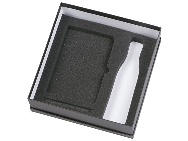 Материал: блокнот - искусственная кожа с покрытием soft-touch, ручка - алюминий с покрытием soft-touch, термобутылка - нержавеющая cталь с покрытием soft-touch, коробка - картон