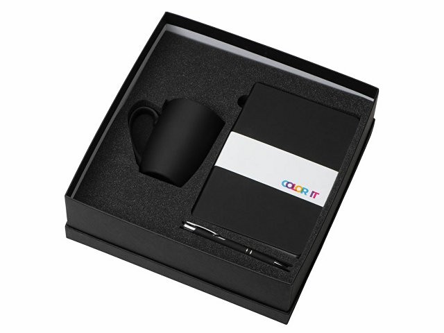 Color It — линейка, в которую входят хиты мерча в десяти самых популярных цветах. Еще никогда собрать сет под свой брендбук не было так просто. Широкая цветовая палитра серии позволяет создать идеальный набор в едином оттенке Pantone. Все товары имеют тактильно приятное покрытие софт-тач. Сет поставляется в коробке: мы продумали все, включая подарочную упаковку, за вас — осталось нанести лого! Фарфоровая кружка с удобной ручкой брендируется методом гравировки, поэтому нанесение будет долговечным и не сотрётся при мытье кружки. Бизнес-блокнот в твёрдой обложке имеет ляссе в тон обложки и среза. Бумажный блок разлинован в линейку и выполнен из бумаги, полученной из древесины из специальных восполняемых лесных ресурсов, имеет сертификат FSC. Шариковая ручка имеет сменный стержень, поэтому такой мерч прослужит дольше обычной одноразовой ручки, долго напоминая о вас клиентам. - объём кружки: 300 мл; - блокнот А5 128 листов; - ручка с необычным слайдером; - подарочная упаковка из картона, оклеенного дизайнерской бумагой уже включена в набор