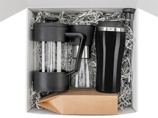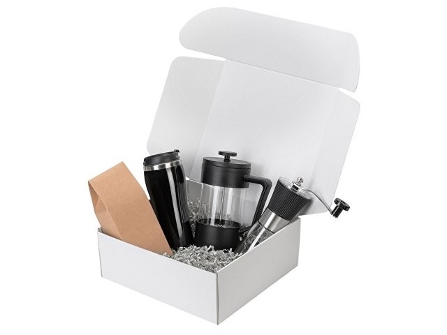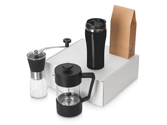 Подарочный набор с кофе, кружкой и френч-прессом "Бодрое утро" 2.0, черный