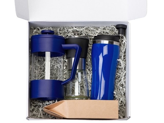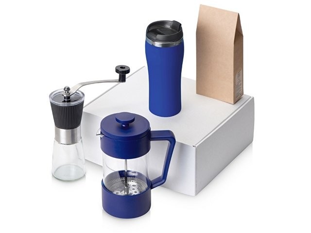 Подарочный набор с кофе, кружкой и френч-прессом "Бодрое утро" 2.0, синий
