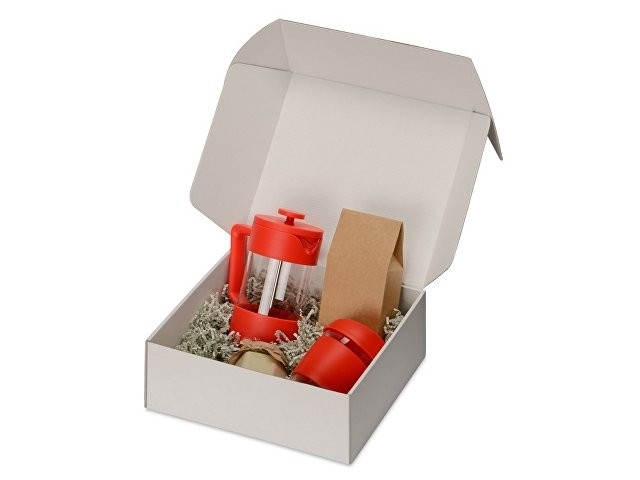 Подарочный набор с кофе, кружкой и френч-прессом "Бодрое утро", красный