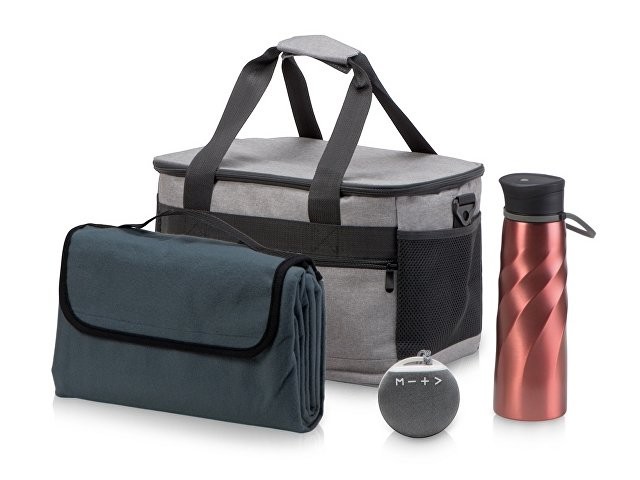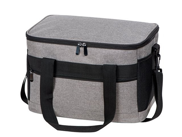 Вместительная сумка-холодильник имеет основное отделение и карман спереди на молнии. Специальная конструкция дна предотвращает протекание жидкости от размораживания. Съемный плечевой ремень регулируется по длине. В комплекте открывалка для бутылок.