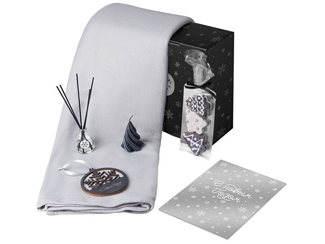 Подарочный набор с пледом, свечой и диффузором, серый
