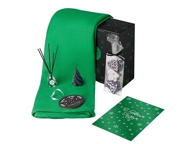 Подарочный набор с пледом, свечой и диффузором, зеленый