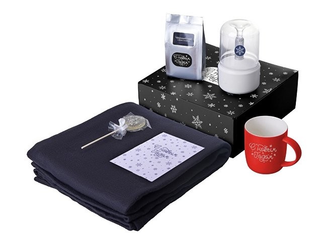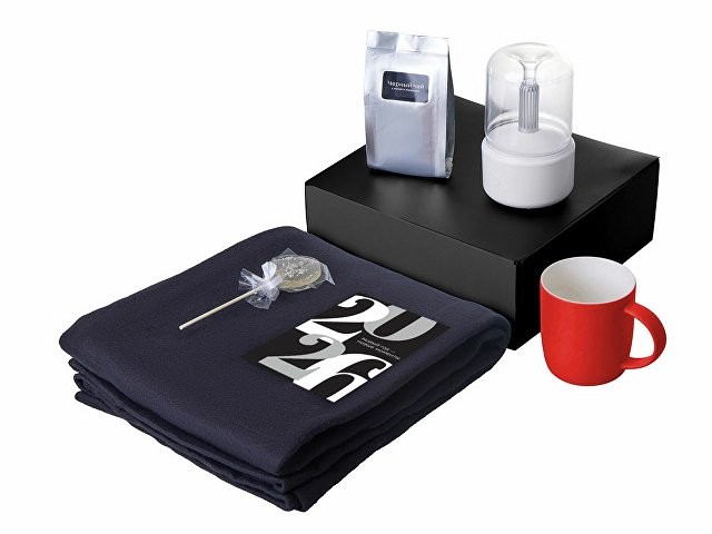 Материал: плед - флис 100% полиэстер; увлажнитель-аромадиффузор - АБС пластик, поликарбонат; кружка - костяной фарфор с покрытием soft-touch; открытка - бумага; мешок - нетканый материал (спанбонд)