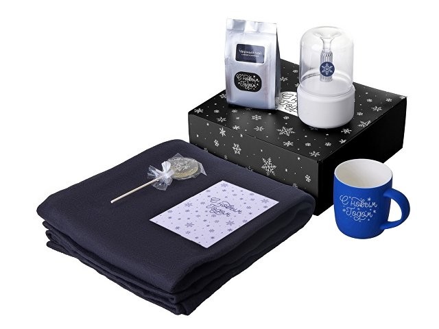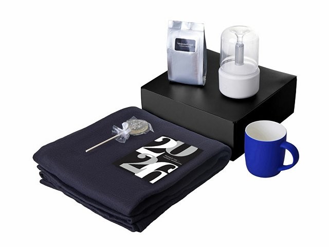Подарочный набор с пледом, увлажнителем и кружкой, синий