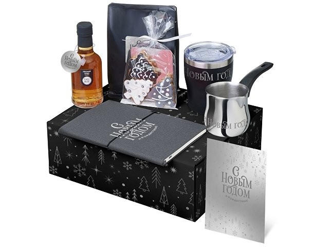 Материал: блокнот - искусственная кожа, бумага; турка - нержавеющая сталь, ручка - бакелит; термокружка - нержавеющая сталь, керамика, крышка- полипропилен; открытка - бумага; мешок - нетканый материал (спанбонд)