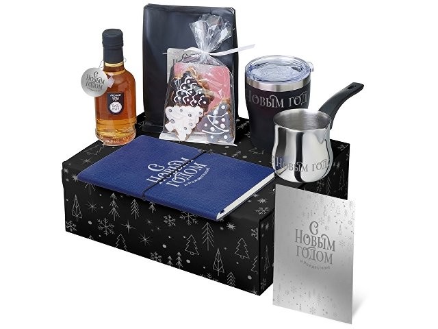 Материал: блокнот - искусственная кожа, бумага; турка - нержавеющая сталь, ручка - бакелит; термокружка - нержавеющая сталь, керамика, крышка- полипропилен; открытка - бумага; мешок - нетканый материал (спанбонд)