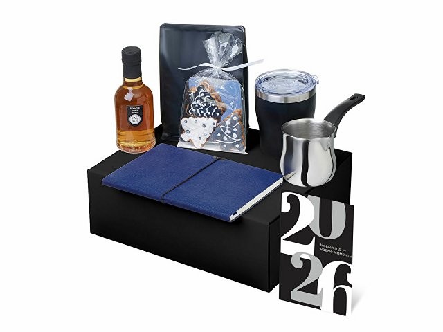Подарочный набор с туркой, кофе и термокружкой, синий