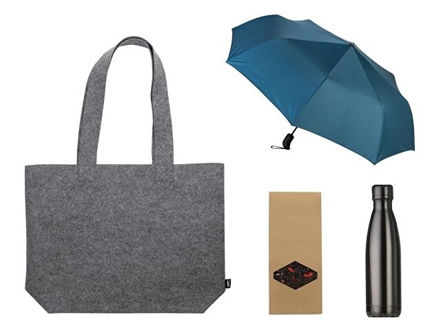 Набор подойдет как для городских прогулок, так и для выездов на природу. Термобутылка сохранит ваш напиток горячим, а зонт защитит от дождя. Зонт-полуавтомат имеет купол из 100% переработанного пластика. Ручка эргономичной формы с прорезиненным покрытием soft-touch. Прочные спицы из стекловолокна помогут зонту устоять под порывами ветра. Термоизолирующая бутылка объемом 500 мл может сохранять напитки горячими или охлажденными в течение 24 часов. Бутылку удобно держать в руках, а также хранить в рюкзаке или портфеле. Купаж классического индийского чая, дополненный фруктами, ягодами и кондитерскими добавками обладает мощным согревающим и тонизирующим эффектом. Удобную вместительную сумку с длинными широкими ручками можно носить в руках или на плече. - сумка изготовлена из фетра толщиной 2 мм; - термоизолирующая бутылка из высококачественной стали; - чехол для зонта в комплекте; - унисекс набор станет отличным подарком на 23 Февраля и 8 Марта. Бутылку нельзя использовать для замораживания, а также в микроволновой печи и посудомоечных машинах.