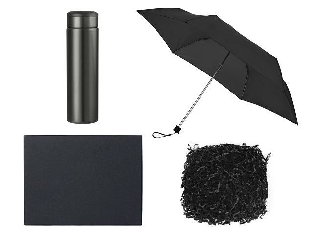Подарочный набор с зонтом и термосом, черный