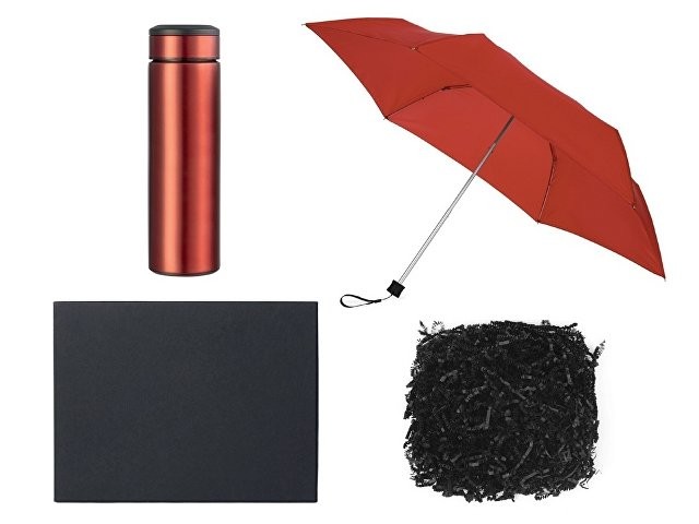 Материал: термос - нержавеющая сталь, зонт; купол - 190Т полиэстер, каркас - алюминий, ручка - покрытие софт-тач, коробка - картон