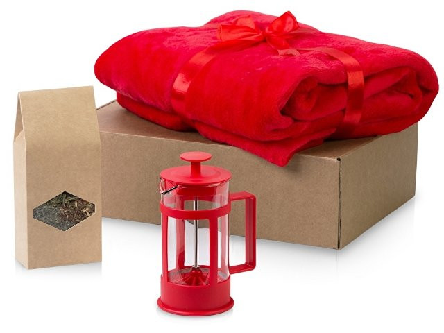 Набор продуман до мелочей. Когда зимним вечером подходит время чая, хочет завернуться в мягкий и теплый плед и наслаждаться любимым напитком, который можно заварить во френч прессе, входящем в комплект. Набор упакован в стильную крафтовую коробку.