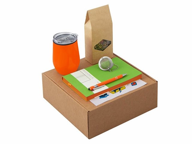 Набор "Writea" станет отличным подарком для сотрудников, клиентов и партнёров, подчеркнёт внимание к их комфорту и заботу о деталях. Он уместен как корпоративный подарок на праздники, юбилеи и деловые мероприятия, так и в качестве welcome-набора для новых коллег. Набор объединяет всё необходимое для комфортного рабочего дня: Ежедневник для идей, заметок и составления рабочих планов на день. В ежедневнике есть полезная справочная информация; Ручка, которая всегда под рукой; Практичная термокружка «Pot» отлично подойдет для использования как дома, так и в офисе, сохраняет тепло до 3-х часов; Ситечко для заваривания — незаменимая вещь для любителей чая. Оно помогает сохранить истинный вкус и аромат напитка, позволяя наслаждаться настоящим листовым чаем без лишних хлопот. Компактное и удобное, ситечко подходит для дома, работы, путешествий или отдыха на природе; Чай «Малина с мятой» - идеально подходит для вечернего расслабления после насыщенного дня; Набор стикеров — для ярких акцентов и персонализации вещей; Универсальный ложемент обеспечивает аккуратное размещение и надёжную фиксацию элементов, делая набор эффектным и презентабельным при вручении. Дополнительное преимущество — набор доступен в конструкторе наборов: компоненты можно заменить и собрать индивидуальный вариант под стиль компании или вкусы получателя.