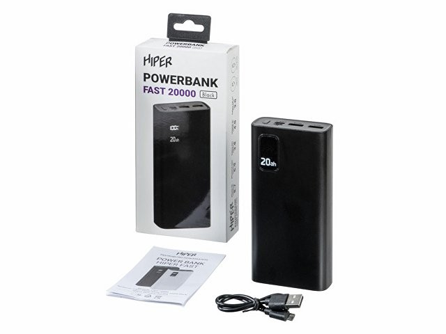 Портативный внешний аккумулятор HIPER FAST 20000 емкостью 20000 мАч (74Втч) оснащён двунаправленным портом USB-C, Micro-USB входом для зарядки, с поддержкой быстрой зарядки аккумулятора QC и PD, 2xUSB-A выходами, максимальный выходной ток 5А, максимальная мощность 22,5 Вт, поддержка быстрой зарядки стандарта QC 18 Вт, поддержка быстрой зарядки стандарта PD 18 Вт, стильный дизайн.