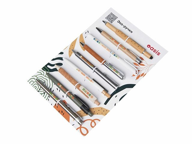 Промо-сет ЭКО ручек — это презентационный комплект, включающий 9 уникальных моделей с несколькими вариантами нанесения: УФ-печать, тампопечать.