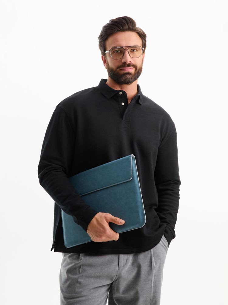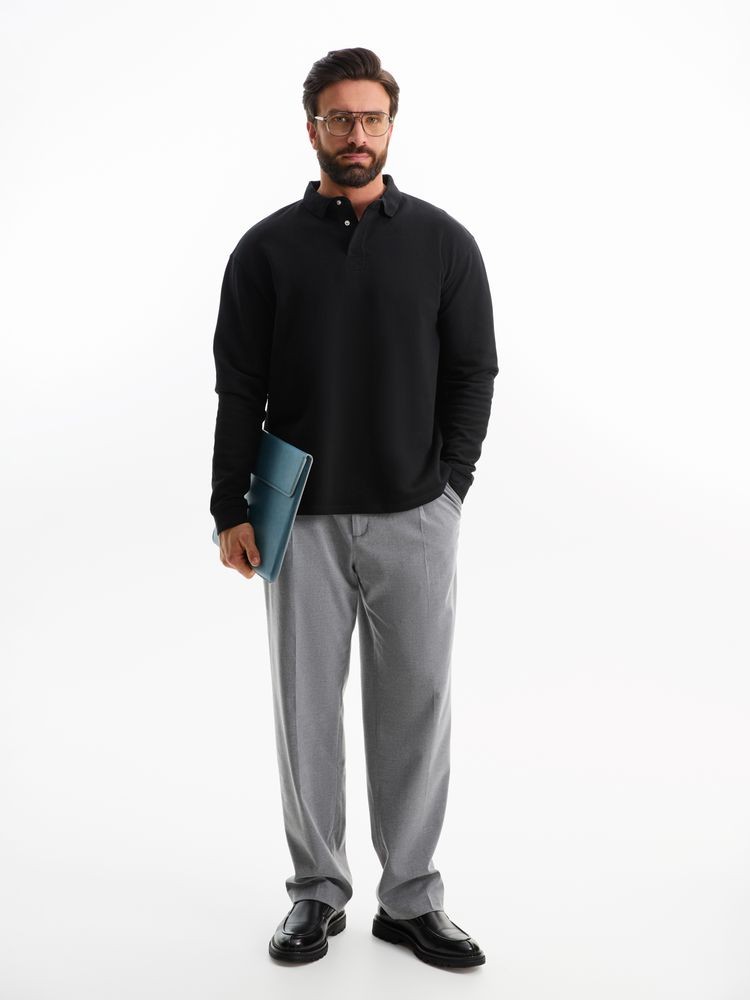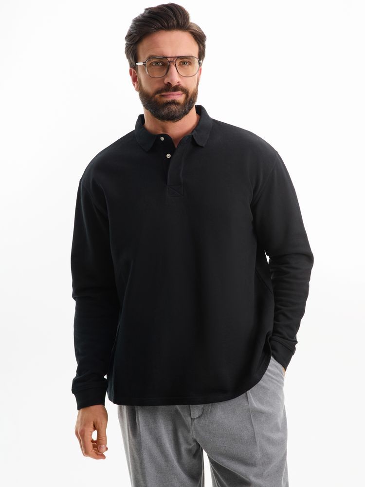 Рубашка поло оверсайз с длинным рукавом Heritage, черная