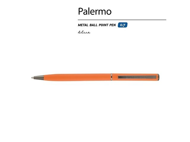 Автоматическая металлическая ручка "Bruno Visconti" серии "Palermo" однотонного цвета порадует любителей всего изящного и утонченного. Покрытие корпуса Soft Touch гарантирует дополнительный комфорт в работе с ней. Стержень легко выдвигается благодаря поворотному механизму. Синие пигментные чернила Dokumental (Германия) и пишущий узел Premec (Швейцария) обеспечивают качественное и мягкое письмо.