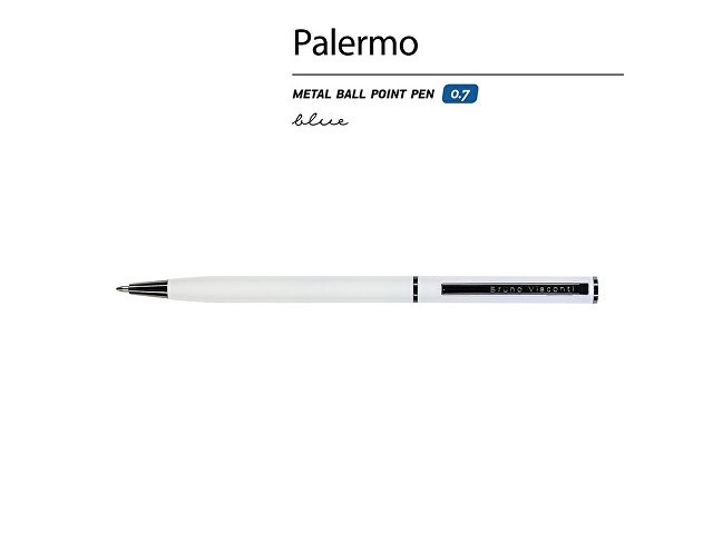 Автоматическая металлическая ручка "Bruno Visconti" серии "Palermo" однотонного цвета порадует любителей всего изящного и утонченного. Покрытие корпуса Soft Touch гарантирует дополнительный комфорт в работе с ней. Стержень легко выдвигается благодаря поворотному механизму. Синие пигментные чернила Dokumental (Германия) и пишущий узел Premec (Швейцария) обеспечивают качественное и мягкое письмо.
