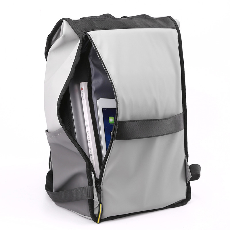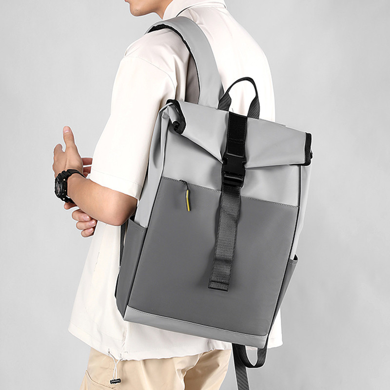 Стильная, элегантная и особо защищенная версия городского ролл-топ рюкзака ALVORT Его особенности - рюкзак сделан из особо прочного полиэстера покрытого водо- и грязезащитной полиуретановой пропиткой, устойчивой к широкому диапазону температур. Одно большое отделение закрывается на липучки-велькро и фиксируется тесьмой с защёлкой-фастексом и возможностью регулирования длины под объём наполнения рюкзака. По бокам два открытых кармана для бутылки, зонта и прочих аксессуаров. На передней стенке объёмный карман на молнии. Сбоку вход в уплотнённое отделение на молнии для ноутбука 15 дюймов. Двойное уплотнение задней стенки распределяет вес и снижает нагрузку на позвоночник. Уплотнённые плечевые ремни регулируются по длине. 3D-сетка на подкладке плечевых ремней предотвращает скольжение и обеспечивает дополнительную вентиляцию и комфорт при контакте с кожей и одеждой. Размер: 30*45 (56 в развёрнутом виде)*14 см Материал товара: Полиэстер с водо- и грязенепроницаемой пропиткой Плотность: 600D Рекомендуемая максимальная нагрузка: не более 10 кг. Цвет по PANTONE® (максимально приближен): Cool Gray 6C / Cool Gray 11C Вместимость: 17 л. Вес: 0.8 кг. Возможна замена пуллеров (арт. 4093) в семи вариантах цвета и нанесение на них УФ печати в количестве 2 шт Возможна установка шильды (арт. 4090, 4091, 4092) на передний карман и нанесение на неё гравировки / тампопечати