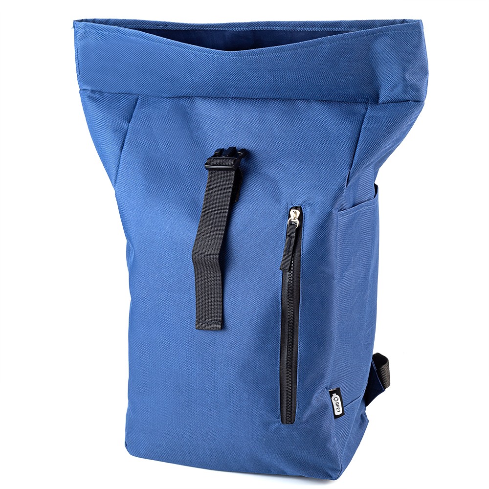 Городской ролл-топ рюкзак ARGON из переработранного полиэстера RPET. Одно основное отделение закрываеся на регулируемый по длине ремень c пряжкой-фастексом. На передней стенке вертикальный карман на молнии-тракторе. Два боковых открытых кармана. Короткая ручка и уплотнённые регулируемые по длине плечевые ремни. Уплотнённая задняя стенка. Размер: 27,5*44(52,5)*16cm Плотность: 600D Рекомендуемая максимальная нагрузка: не более 7 кг. Вместимость: 17 л.