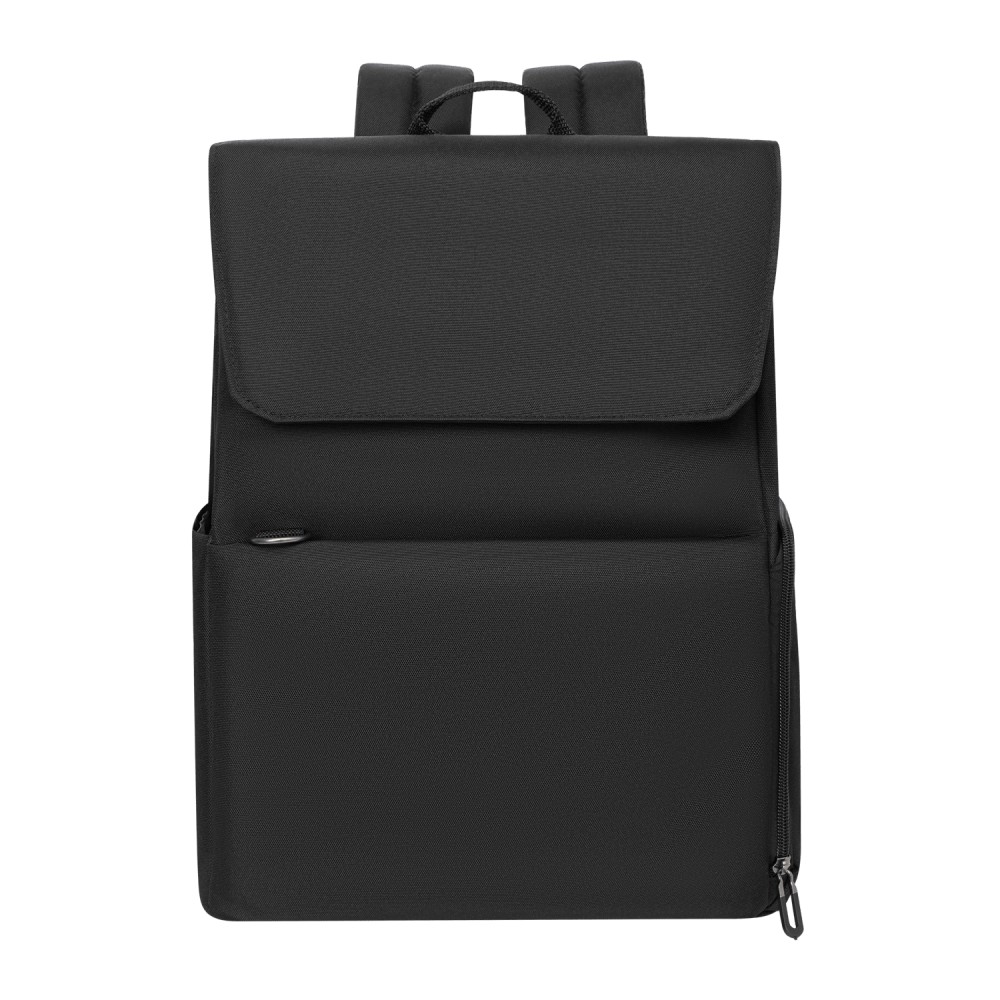 Основное отделение вмещает ноутбук до 15,6 дюймов в уплотненном кармане с фиксирующим ремнем на липучке. Внутри основного отделения есть карман для фиксации пластиковой бутылки или небольшого термоса. Боковые карманы разного типа — один объемный на молнии, второй плоский — позволяют удобно разместить все необходимые вещи.