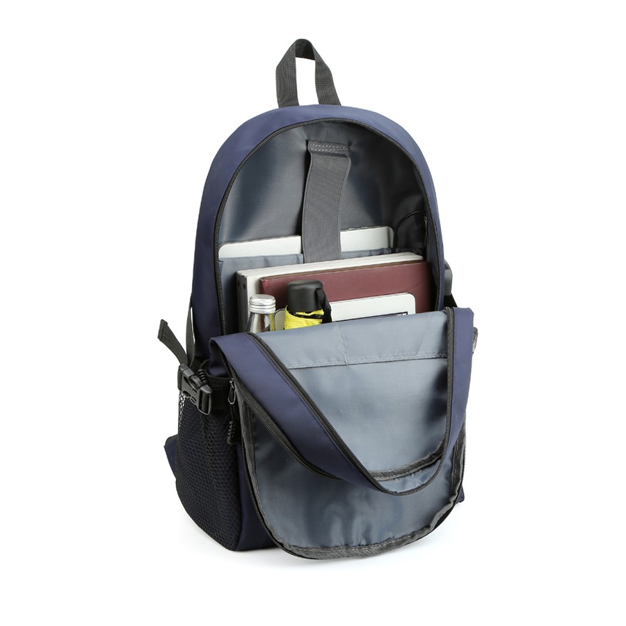 Полуспортивный и многофункциональный городской рюкзак METROPOL. Его особенности - в этом рюкзаке элементы спортивного стиля и высококачественного нейлона сочетаются с высокой функциональностью. Два отделенияя закрываются на молнии. В заднем уплотненный карман для ноутбука 15,6 дюймов с клапаном-резинкой на велькро и карман-органайзер для мелких аксессуаров.. На передней стенке вертикальный карман на молнии. Сбоку USB-разъем с проводом для подключения внешнего аккумулятора, который при необходимости можно спрятать под небольшой молнией внутри и два объёмных кармана с вентилируемой сеткой и регулируемыми тесьмами-стяжками на защёлках-фастексах которые существенно расширяют функционал и вместимость рюкзака. 3D-сетка на подкладке плечевых ремней предотвращает скольжение и обеспечивает дополнительную вентиляцию и комфорт при контакте с кожей и одеждой. Уплотнённые плечевые ремни регулируются по длине и имеют дополнительные петли из тесьмы для крепления аксессуаров и гаджетов. Размер: 46*33*16 см Материал: Нейлон Рекомендуемая максимальная нагрузка: не более 10 кг. Цвет по PANTONE® (максимально приближен): 2757 C Вместимость: 22 л. Вес: 0.61 кг Возможно добавление пуллеров (арт. 4093) в количестве 5 шт в семи вариантах цвета и нанесение на них УФ печати Возможна кастомизация с помощью ремувки (арт. 4094, 4097) в восьми вариантах цвета и нанесение на неё термопечати